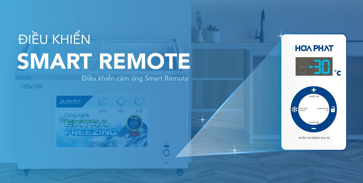 Bảng điều khiển Smart Remote của tủ đông Hòa Phát HSF AD6357.C1 được bố trí ngay bên ngoài, nhằm thuận tiện hơn cho người dùng khi thao tác cài đặt. Nhiệt độ được hiển thị rõ ràng ngay trên mặt điều khiển giúp người dùng dễ dàng theo dõi và quan sát hơn. Đồng thời Smart Remote còn có thể phát hiện lỗi và đưa ra tín hiệu cảnh báo khi tủ bị mất hơi lạnh. Điều này giúp người dùng nhận biết vấn đề và kịp thời khắc phục để tránh ảnh hưởng đến chất lượng thực phẩm bên trong.