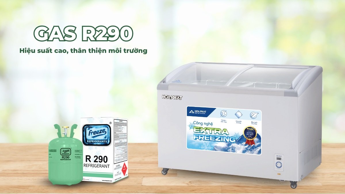 Gas R290 vốn là dòng gas có hiệu suất làm lạnh cao. Chính vì ưu điểm này mà tủ đông Hòa Phát HSF AD6357.C1 có thể làm lạnh cho thực phẩm nhanh và ổn định, góp phần tiết kiệm năng lượng hiệu quả. Ngoài ra, đây còn là dòng gas ít cháy nổ, không ảnh hưởng xấu đến tầng Ozon nên người dùng có thể yên tâm lựa chọn sử dụng chiếc tủ đông này.