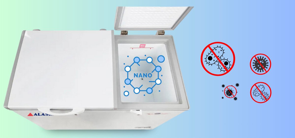Bên trong lòng tủ Tủ Đông Mát Alaska 210 Lít BCD-3571 còn được phủ lớp nano có khả năng kháng khuẩn, ngăn chặn sự phát triển của nấm mốc sinh ra trong quá trình sử dụng. Điều này giúp không gian bên trong tủ luôn duy trì trạng thái sạch sẽ để bảo quản thực phẩm một cách tốt nhất.