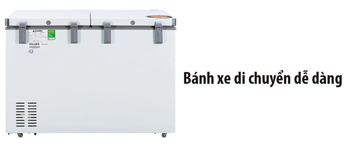 Tủ đông Alaska đi kèm với bánh xe, giúp việc di chuyển dễ dàng và thuận tiện. Bạn có thể dễ dàng đặt và di chuyển tủ đông mát theo nhu cầu của mình mà không mất nhiều công sức. Trang bị này mang lại sự linh hoạt và tiện lợi trong việc sắp xếp không gian và vận chuyển sản phẩm.