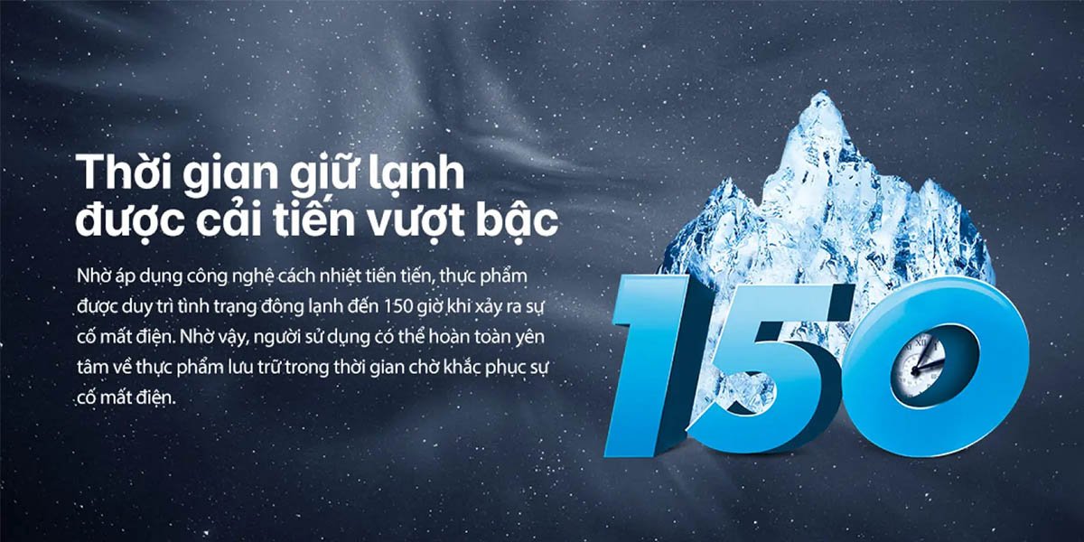 Duy trì nhiệt độ lên đến 150 giờ sau khi mất điện