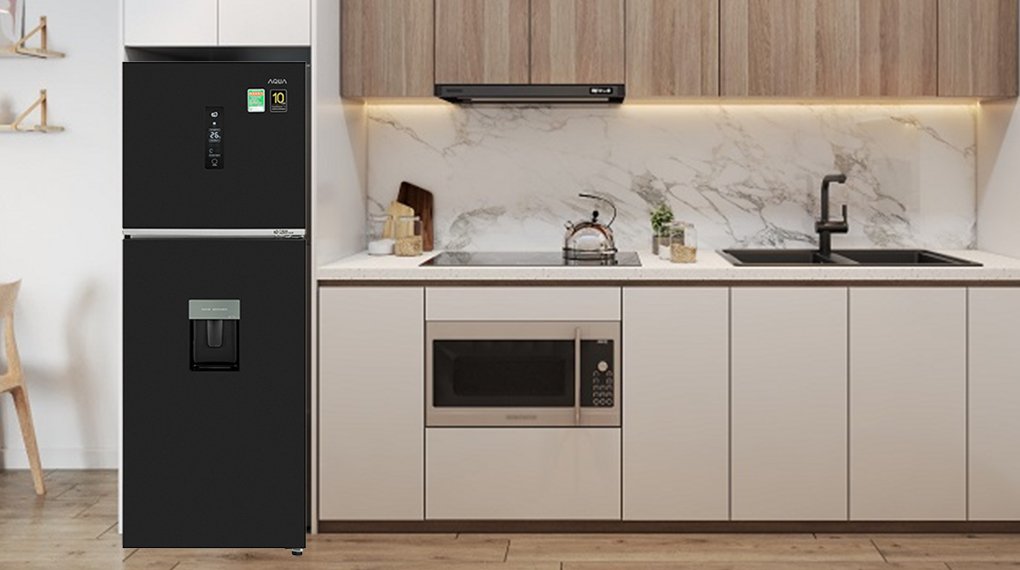 – Mẫu tủ lạnh Aqua này được thiết kế với dung tích 318 lít, phù hợp cho những gia đình từ 3 – 4 người.