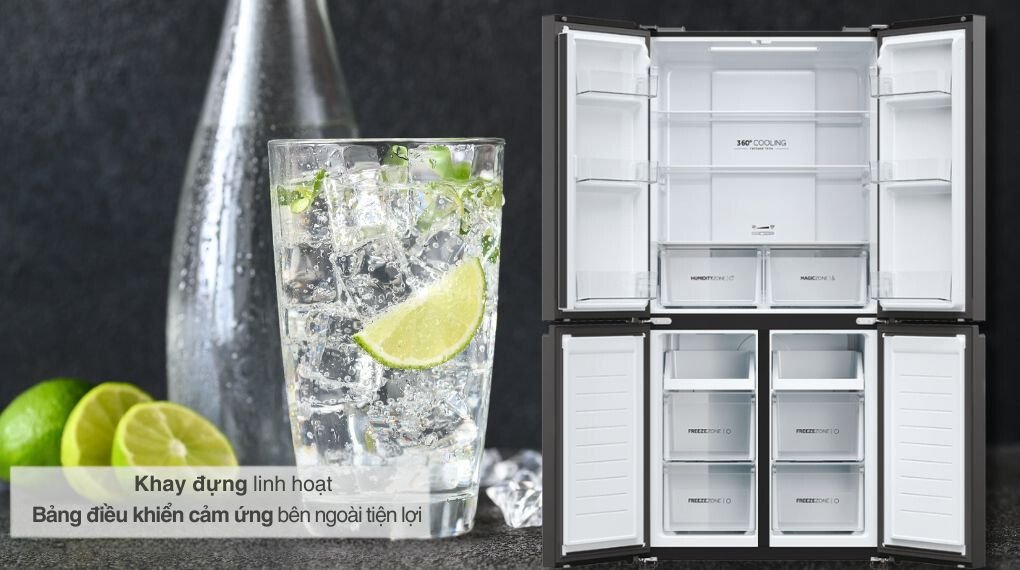 – Thực phẩm, đồ uống được lưu trữ, cất giữ trong tủ sẽ luôn giữ được độ tươi ngon nhờ công nghệ làm lạnh đa chiều. Các luồng khí lạnh sẽ được lan tỏa đến mọi không gian bên trong tủ, làm lạnh đều cho cả thực phẩm và đồ uống.