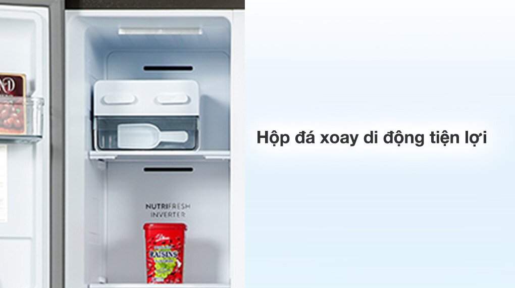 – Có hộp làm đá xoay di động để bạn làm đá viên tiện lợi, thiết kế có thể lấy ra ngoài dễ dàng cho người dùng có thêm không gian trống để đựng được nhiều thực phẩm hơn.