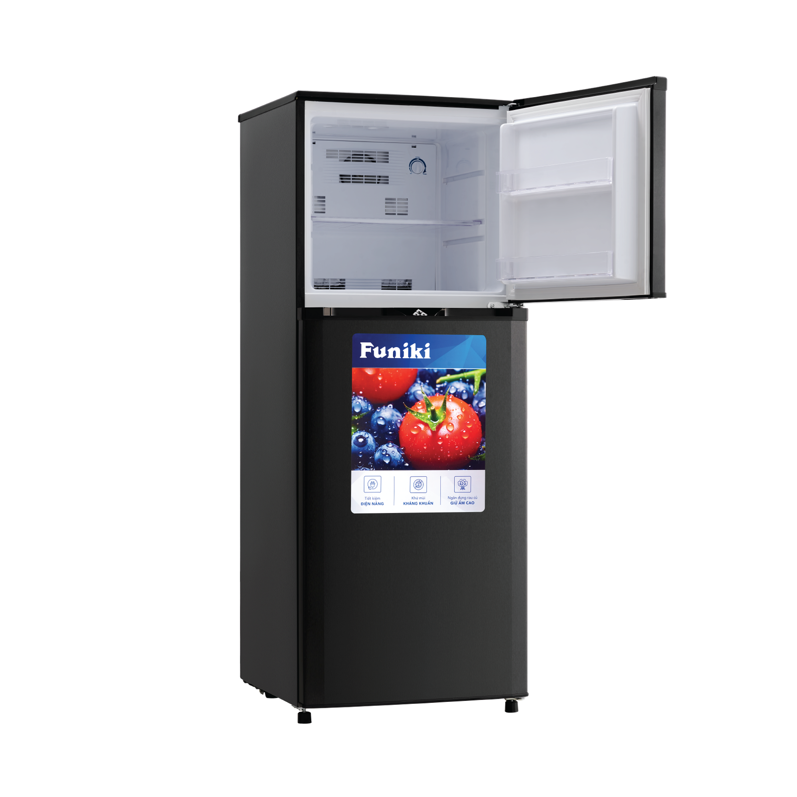 – Tủ lạnh Funiki được thiết kế kiểu dáng ngăn đá trên, sở hữu gam màu ghi đen kết hợp hài hòa cùng với nội thất trong không gian bếp.