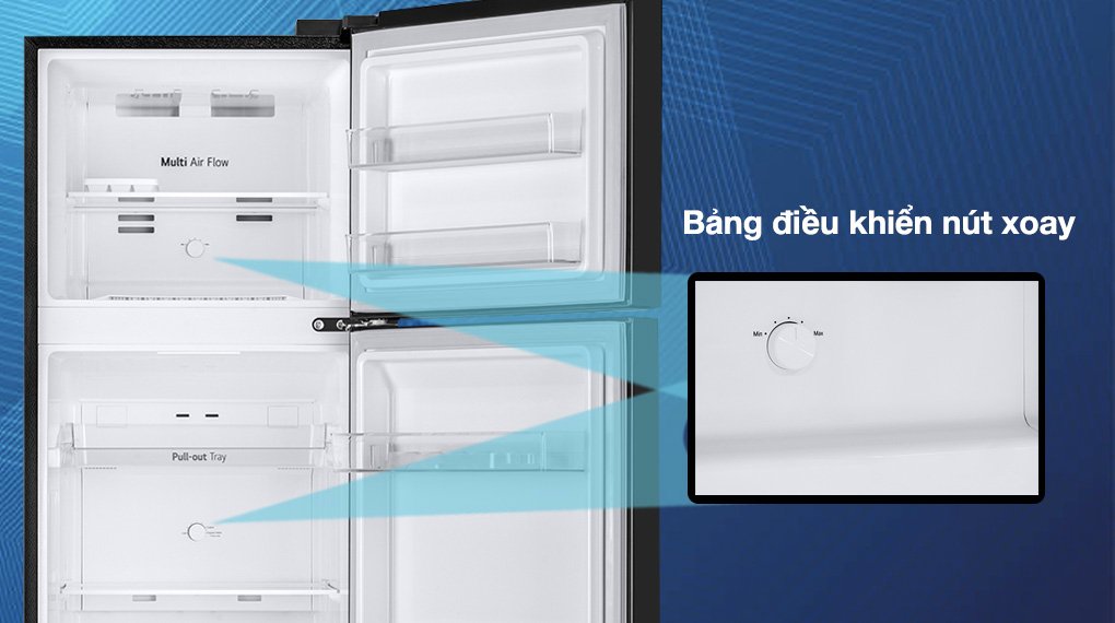 *Hình ảnh chỉ mang tính chất minh họa Bảng điều khiểnBảng điều khiển của tủ lạnh LG Inverter này được thiết kế dạng núm xoay riêng biệt ở ngăn đá và ngăn lạnh, nằm ở mặt trong thành của tủ lạnh, đối diện khi người dùng mở cửa tủ ra.