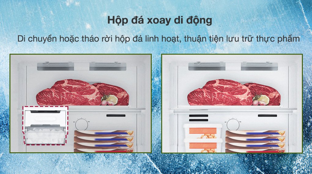 Hộp đá xoay di động: Có thể di chuyển hộp đá linh hoạt để thuận tiện cho việc lưu trữ thực phẩm.