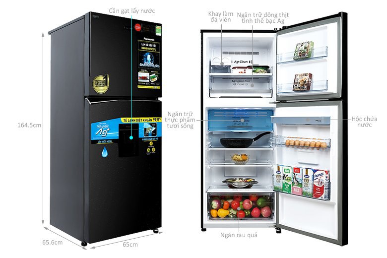 Kích thước tủ lạnh: Cao 162.6 cm – Rộng 65.7 cm – Sâu 63.8 cm – Nặng 57 kg