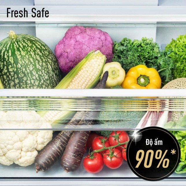 | Duy trì độ ẩm giúp rau củ quả tươi ngon Duy trì độ ẩm 90%* và mức nhiệt độ không đổi tạo điều kiện lý tưởng giúp cho trái cây và rau củ tươi xanh lâu hơn. *Dữ liệu do Panasonic lập. | ![]() ![]() | |