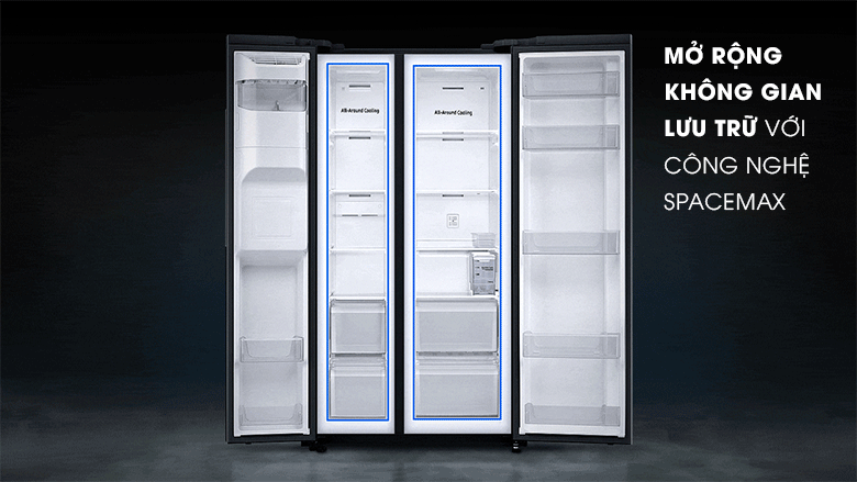 Tủ lạnh Samsung Inverter 635 lít RS64R5301B4/SV sở hữu công nghệ SpaceMax viền siêu mỏng, nhằm mở rộng thêm không gian lưu trữ siêu lớn mà không làm tăng kích thước bên ngoài hay tiêu tốn thêm nhiều năng lượng.