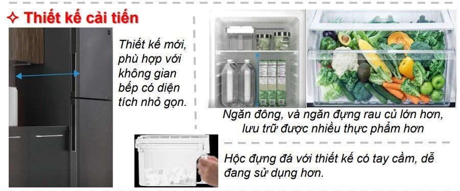 Với dung tích 300 lít, 95 lít cho ngăn đá, 205 lít cho ngăn mát cùng cách bố trí các ngăn kệ vô cùng khoa học, cho bạn thêm nhiều không gian để bảo quản thực phẩm. Sản phẩm này phù hợp cho gia đình có trên 2-3 thành viên sử dụng.