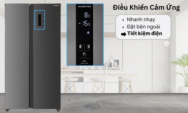 Bảng điều khiển cảm ứng nhanh nhạyTủ lạnh Sharp Inverter 532 lít SJ-SBX530V-DS trang bị bảng điều khiển cảm ứng bên ngoài cửa tủ hiển thị rõ các chức năng, công nghệ cảm ứng nhanh nhạy để bạn dễ dàng thao tác lựa chọn và điều chỉnh thiết bị. Bảng điều khiển đặt bên ngoài còn tăng khả năng tiết kiệm điện so với bên trong như tủ lạnh truyền thống. Chúng cũng được đặt ở vị trí xa tầm với của trẻ em để tránh trẻ hiếu động nghịch phá các chức năng. ![]() ![]() Thông số kỹ thuật