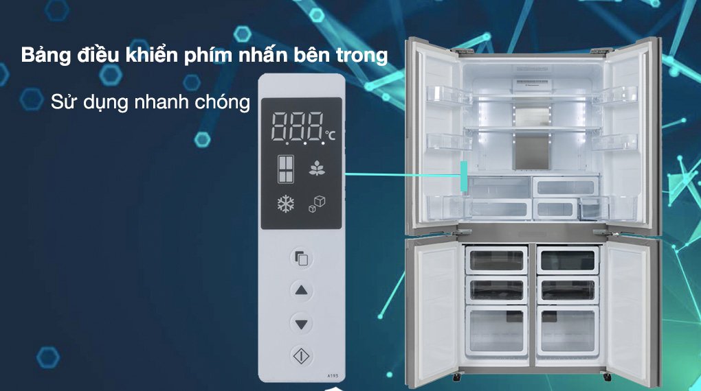 – Bảng điều khiển được bố trí bên trong tủ, nằm ở bên trái trên thành tủ của ngăn lạnh.