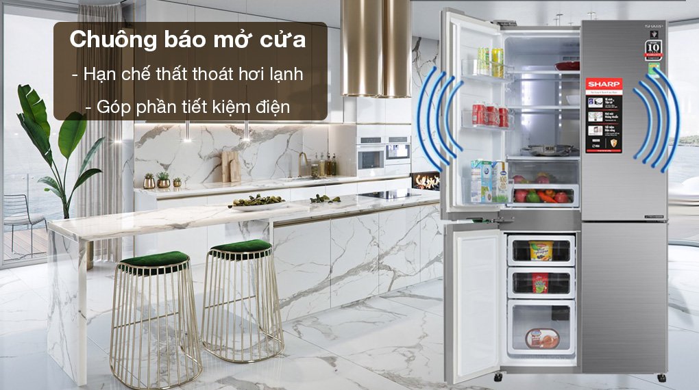 – Chuông báo khi quên đóng cửa: Giúp người dùng phát hiện nhanh chóng cửa tủ lạnh chưa được khép kín hoặc mở quá lâu, gây thất thoát hơi lạnh ra ngoài làm ảnh hưởng đến việc bảo quản thực phẩm và điện năng tiêu thụ của thiết bị.