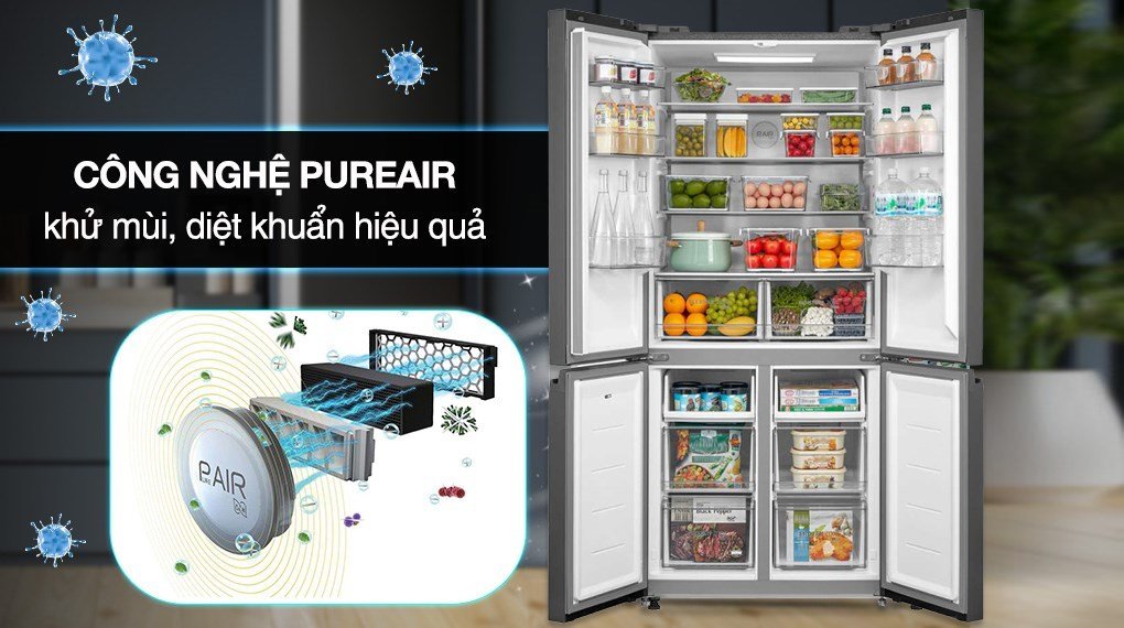 Tích hợp công nghệ PureAir tạo ra plasma ion siêu mạnh tìm kiếm và tiêu diệt vi khuẩn với hiệu quả 99.99%, khử mùi hôi khó chịu 99% toàn diện trong cả ngăn lạnh và ngăn đá, đảm bảo thực phẩm tươi lâu hơn, bảo vệ sức khỏe của gia đình tốt hơn.