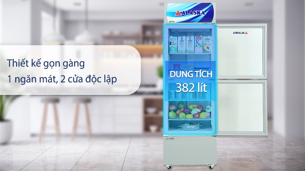 Tủ mát Alaska 382 lít LC 743DB thiết kế kiểu tủ đứng 2 cánh với 1 ngăn trên dưới giúp phân bố thực phẩm thuận tiện, công nghệ làm lạnh đối lưu cưỡng bức giúp hơi mát luân chuyển nhanh và đều, gas R134a tiết kiệm điện cùng nhiều tiện ích sử dụng khác.
