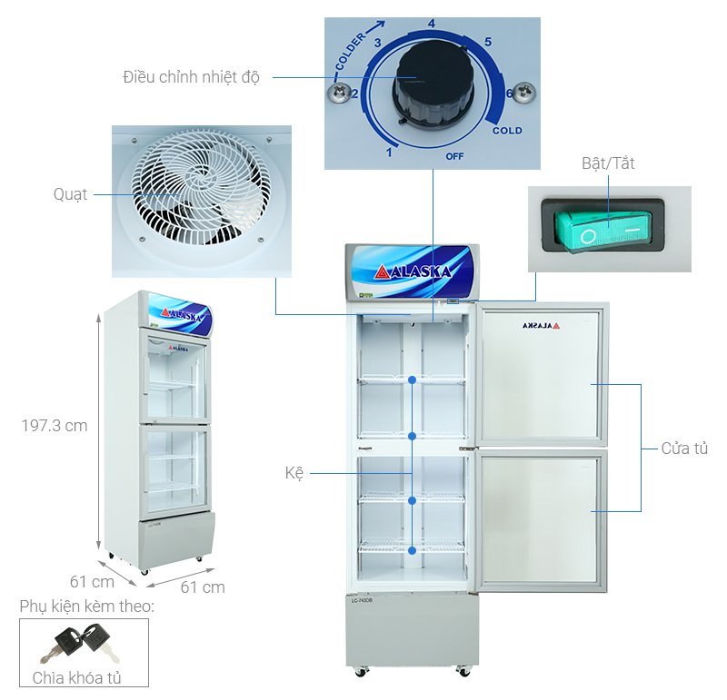 – Tủ mát Alaska làm lạnh nhanh nhờ công nghệ đối lưu cưỡng bức, ép luồng khí lạnh luân chuyển luồng đều khắp để thực phẩm được bảo quản tốt hơn, tươi mới lâu và ngon hơn và tiết kiệm điện.
