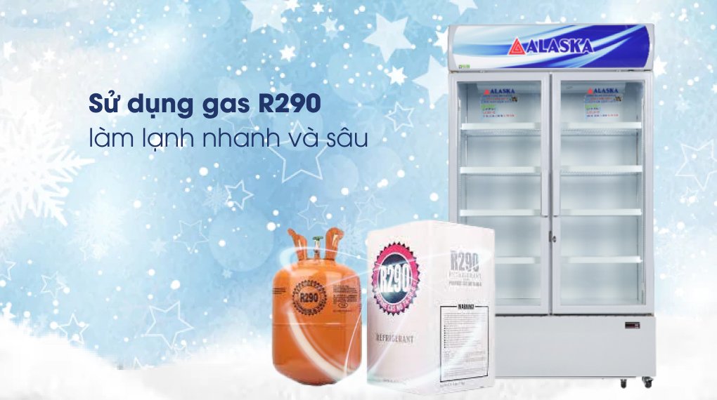 – Sử dụng gas R290 – loại thường được sử dụng trên các tủ mát, tủ đông cao cấp. Gas R290 có khả năng làm lạnh sâu để bảo quản thực phẩm tối ưu,…