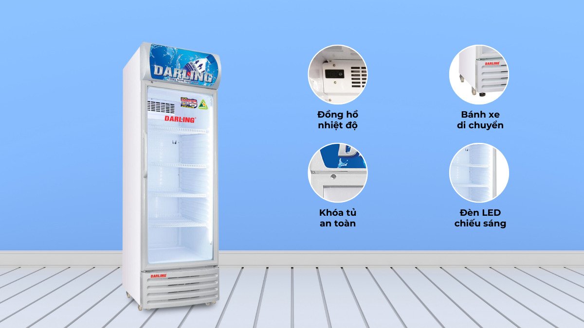 Chiếc tủ mát Darling này có dung tích tổng là 380 lít, được đánh giá là khá thoải mái khi dùng trong gia đình. Bên cạnh đó, những hộ kinh doanh có quy mô nhỏ vẫn có thể sử dụng chiếc tủ nảy để bảo quản, trưng bày hàng hóa, sản phẩm.