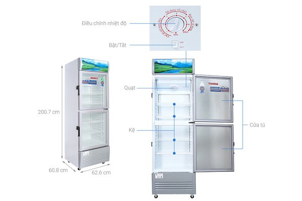| Loại tủ | Tủ mát 1 cánh trên, 1 cánh dưới |